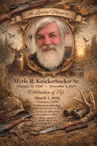 Myrle’s daughter, Amber McDonough, has requested that “anyone that knew and loved our father are welcome to come to honor him and if you have special memories you would like to share either during the service or after we would love to hear them! Any old pictures anyone may have please contact me, his daughter Amber McDonough, here on Facebook. I would love to make copies. Please share to get the word out. His announcement will be in the Meadville tribune soon.”